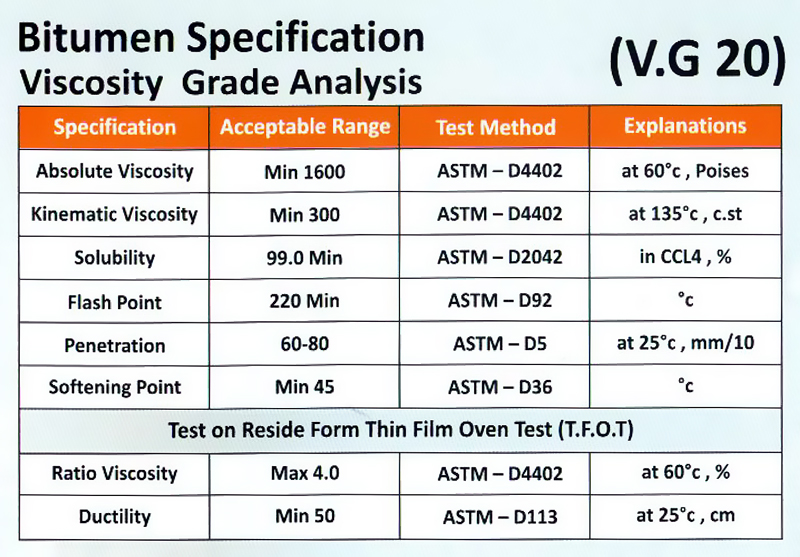 Viscosity grading is one of the commonly used methods for classifying Bitumen based on its viscosity at 60°C. In this system, Bitumen is classified into different viscosity grades, ranging from AC 2.5 to AC 30, with lower viscosity grades indicating more fluid or flowable Bitumen.