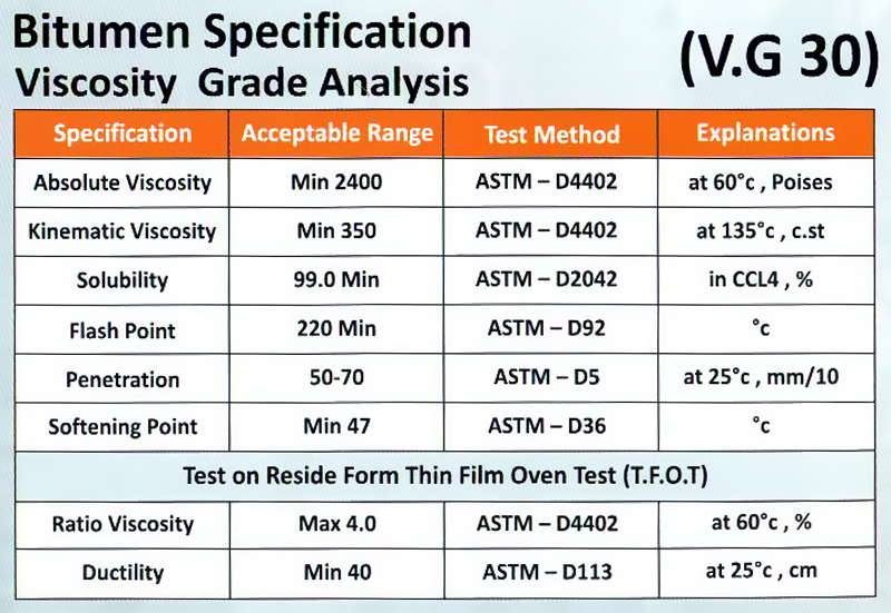 Viscosity grading is one of the commonly used methods for classifying Bitumen based on its viscosity at 60°C. In this system, Bitumen is classified into different viscosity grades, ranging from AC 2.5 to AC 30, with lower viscosity grades indicating more fluid or flowable Bitumen.